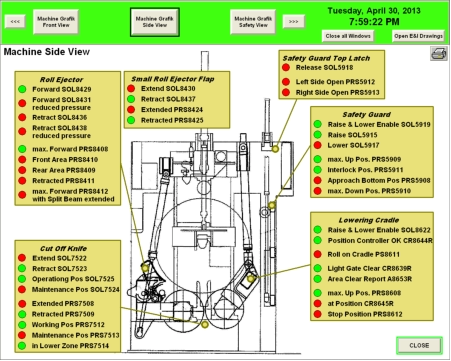 Since the Automation world is getting more and more sophisticated and more difficult to overlook, PACE Inc. developed a diagnostic tool that supports operation personal as well as maintenance people to find present problems with the machine & equipment. With the additional Historian module, it is possible to look back into any kind of issues and figure out the sequence of occurrences to improve situations for the future.The tool basically simulates the operation of the equipment and guides the user to an occurring problem that causes the machine to malfunction or to stop.To make troubleshooting even easier you can combine the diagnostic tool with our Info Data Softwarepackage that shows you all the physical items in real pictures and links you right to the E&I, Mechanic, Hydraulic and Pneumatic schematics!All the information right there with a click of a button!