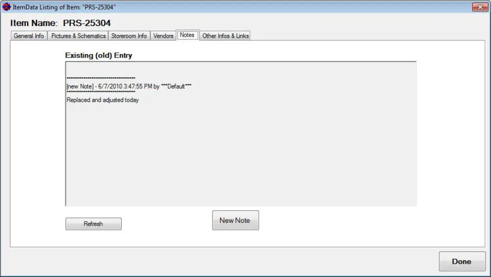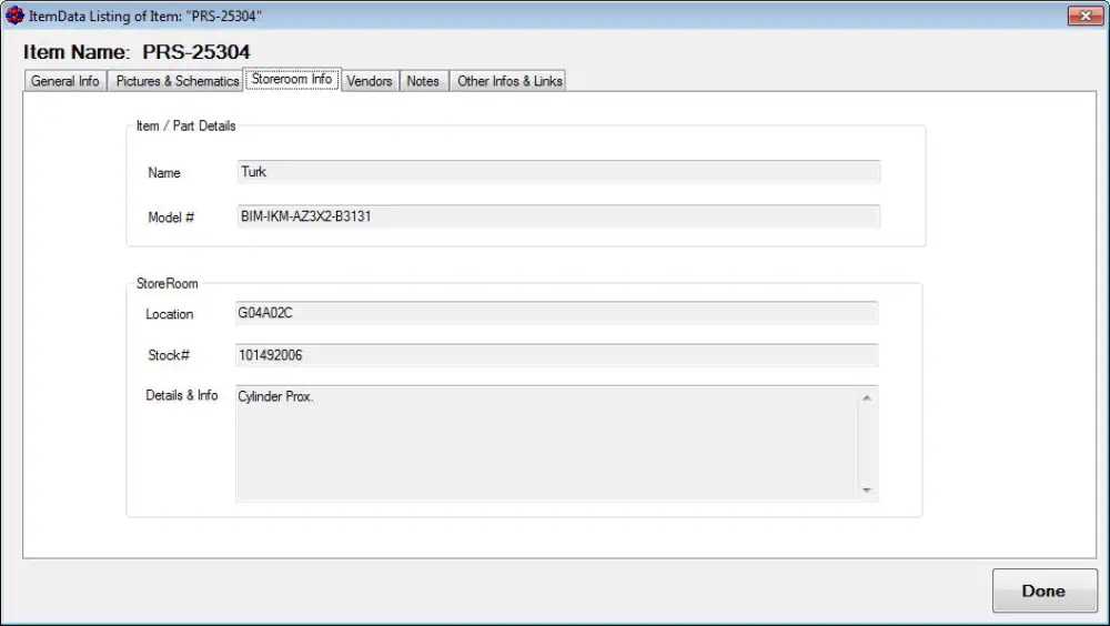 vendor order info, storeroom spare part info and of course keep a logbook with your entries every time that